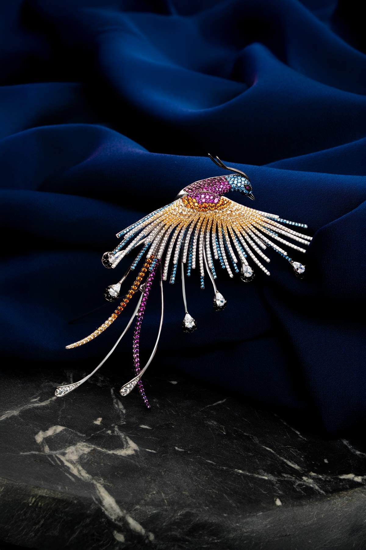 Anka Kuşu 18 Ayar Beyaz Altın Kaplama Gümüş Broş