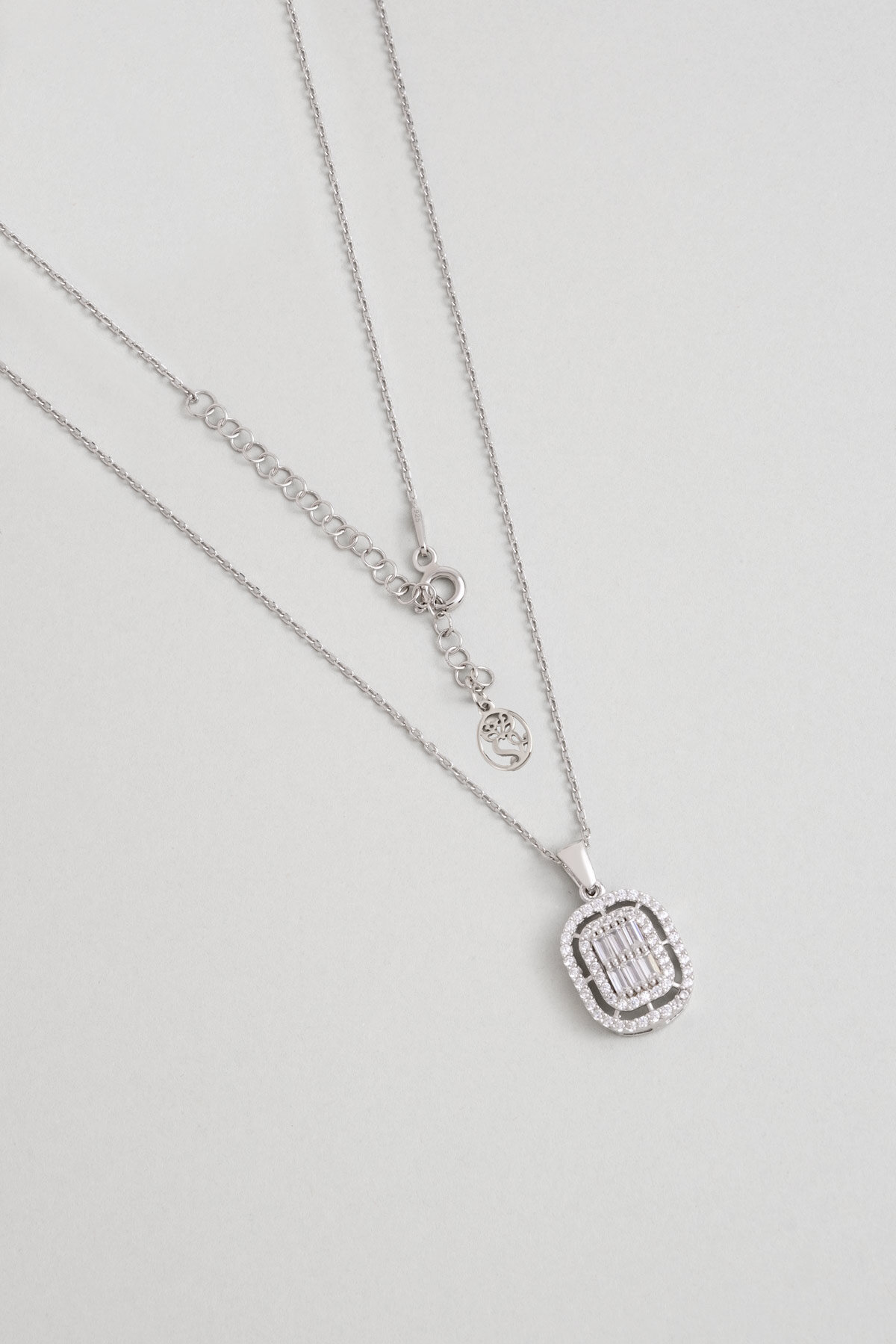 Avangard 18 Ayar Beyaz Altın Kaplama 45 Cm Gümüş Baget Kolye