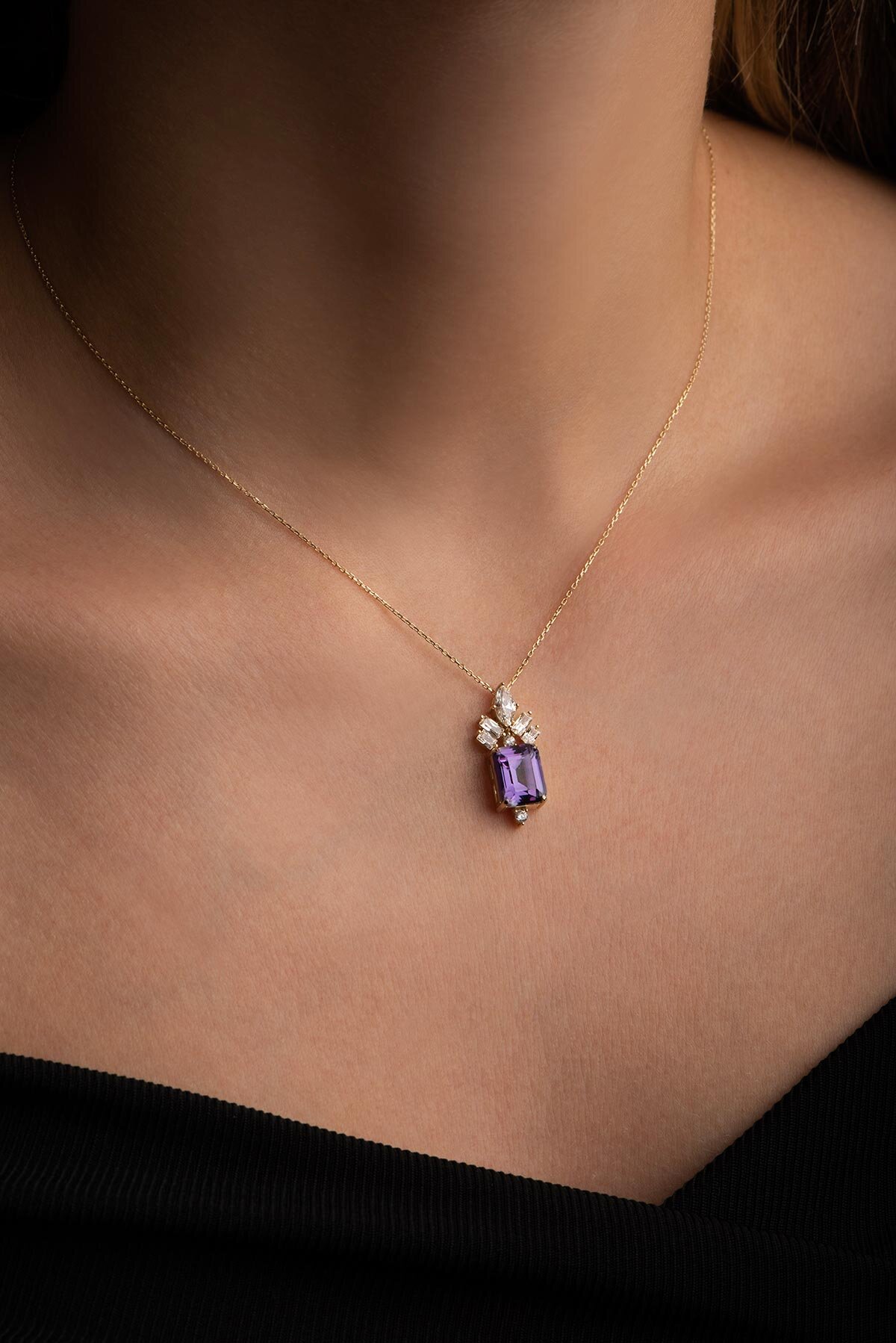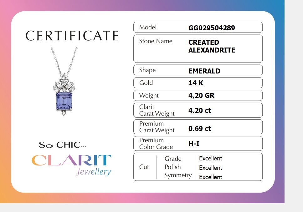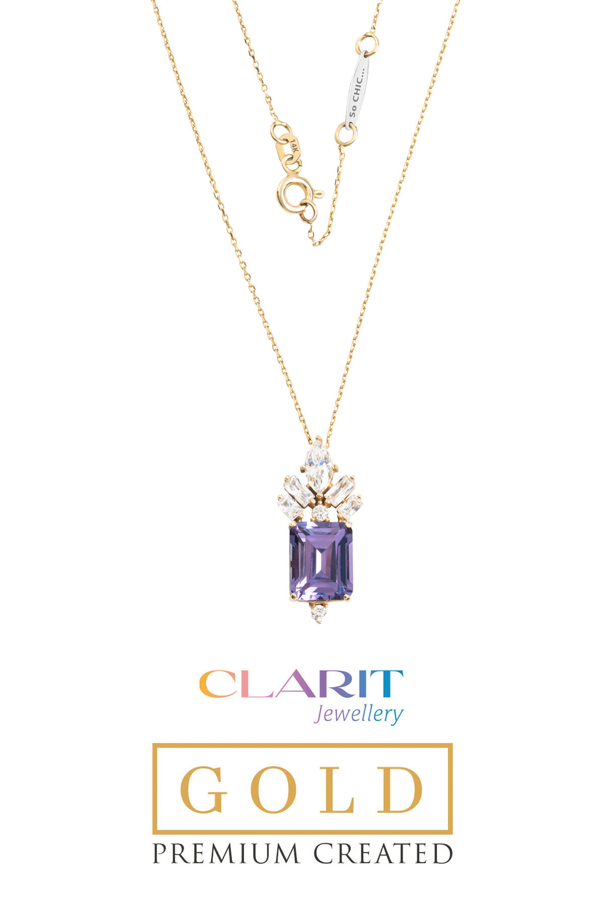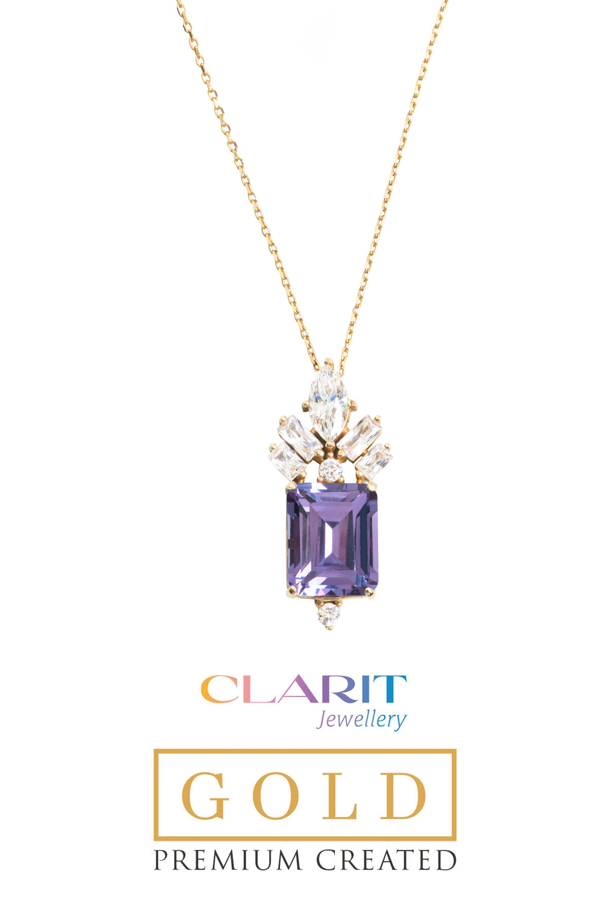 Created Alexandrite Taşlı Clarit Serisi 14 Ayar Sarı Altın Kolye