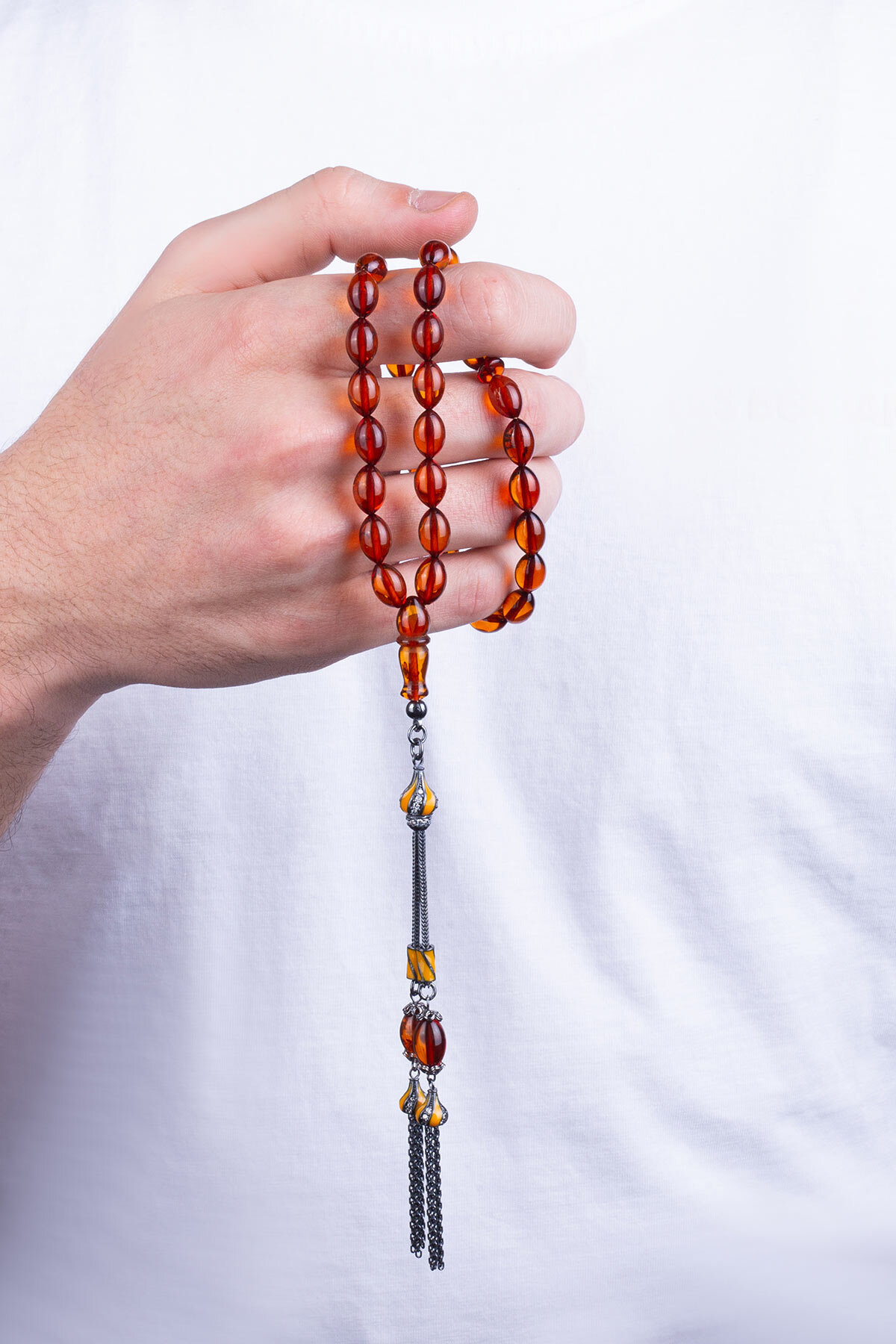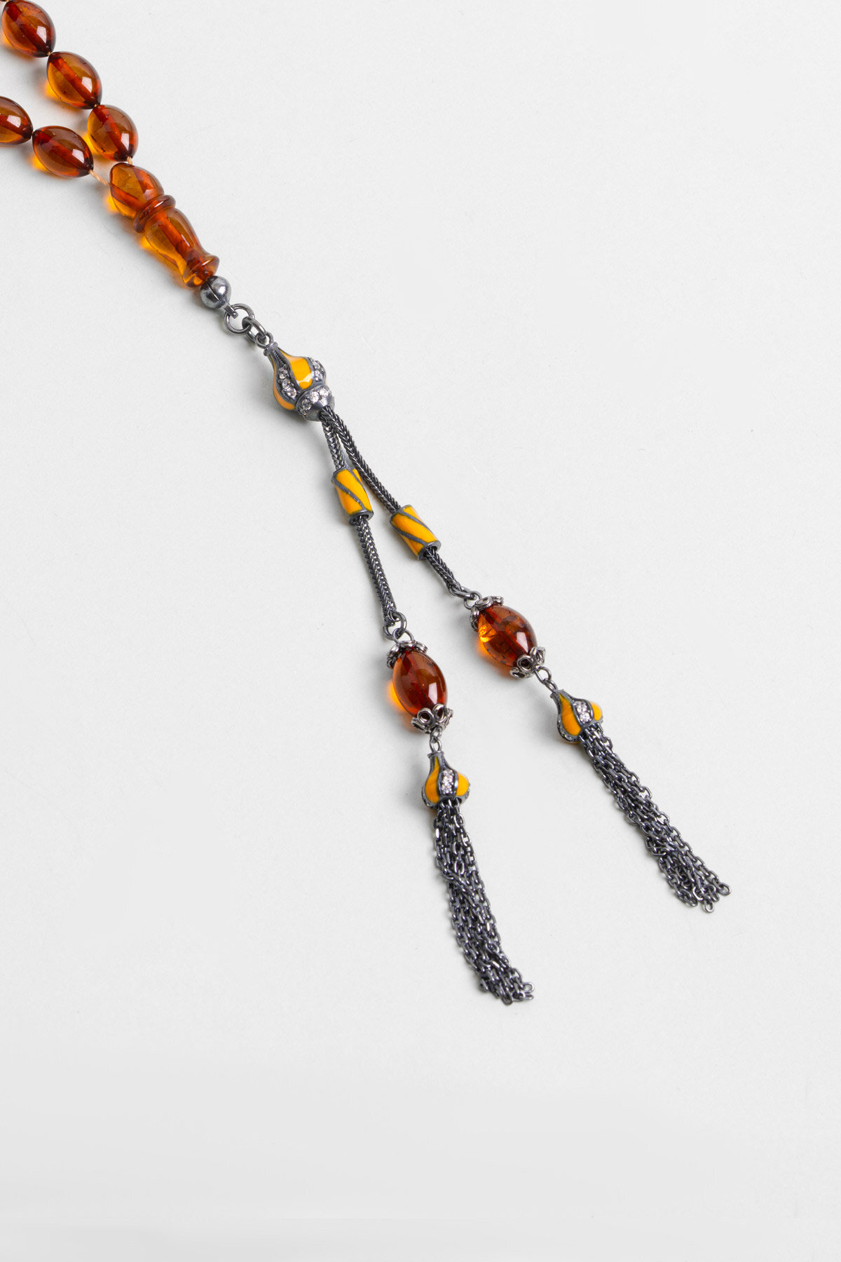Doğal Kehribar Taşlı 33 Cm Gümüş Tesbih