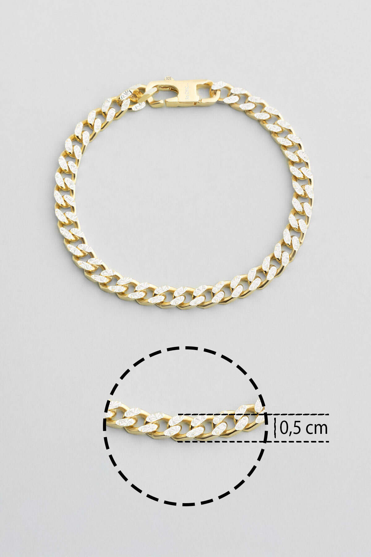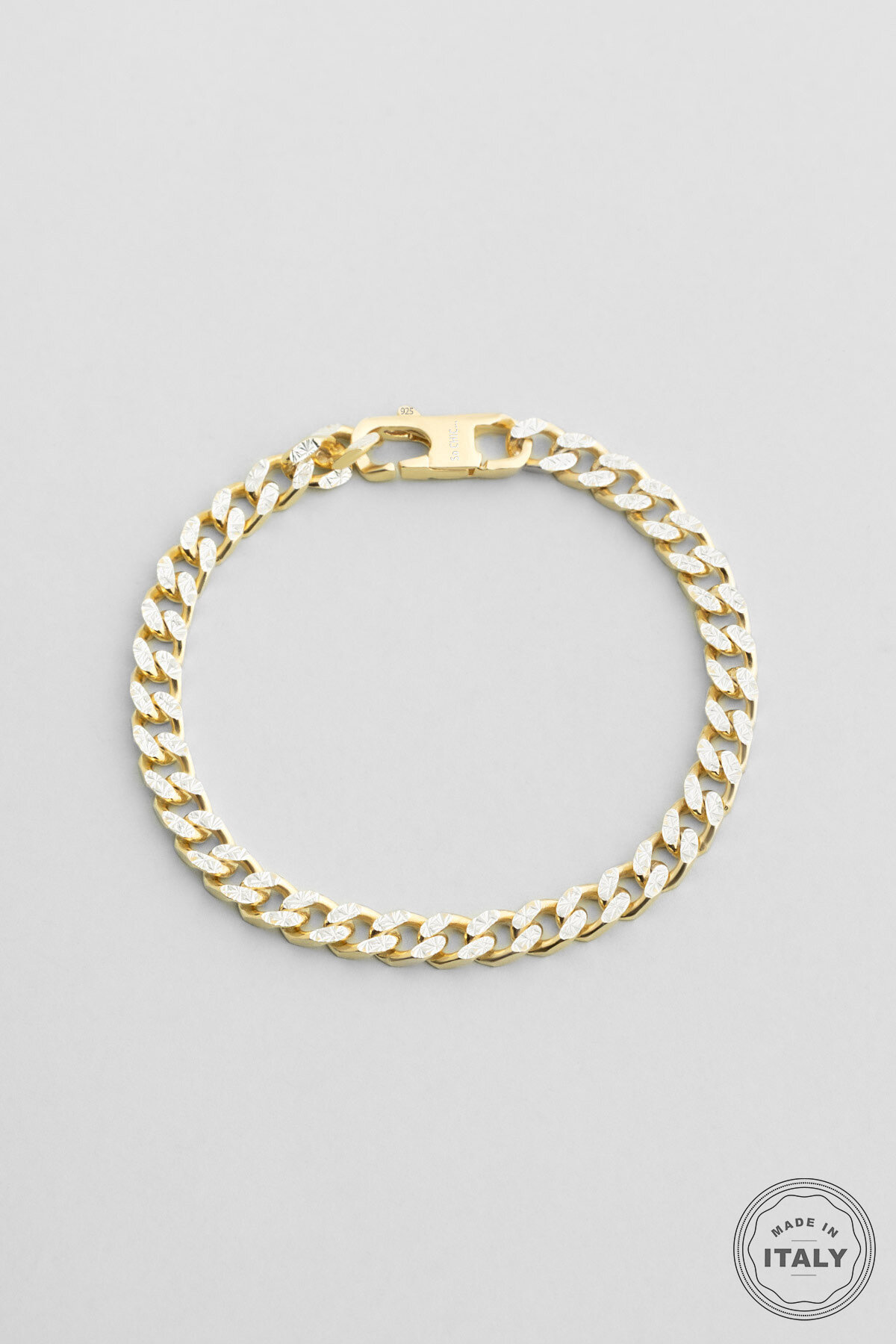 Lucente zincir bileklik, İtalyan işçiliğinin zarafetini modern çizgilerle buluşturur. 18 ayar sarı altın kaplama yüzeyi üzerine uygulanan kalem kesim detaylar, parlak ve akıcı formunu daha da öne çıkararak bileğinizde ışığı ustalıkla yansıtır. Günlük stilinize sofistike bir ışıltı katan zamansız bir tamamlayıcıdır.