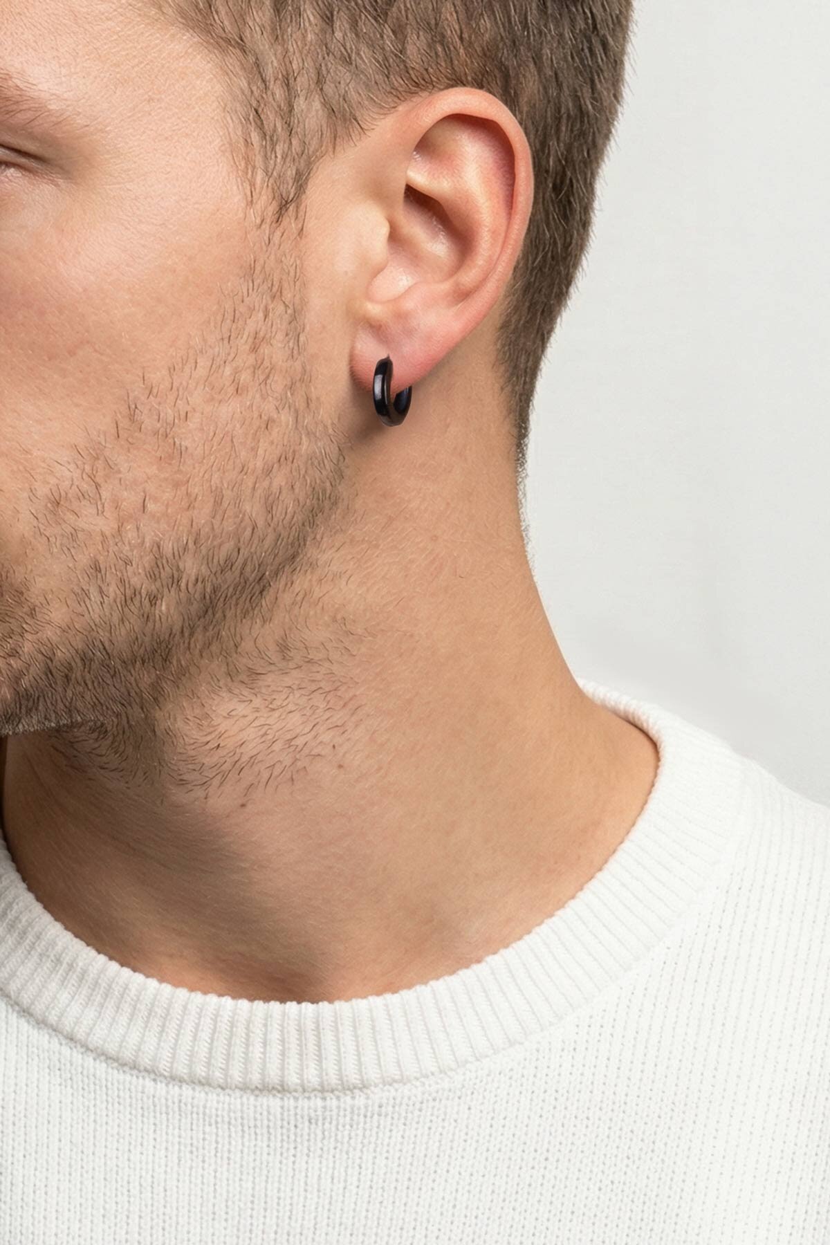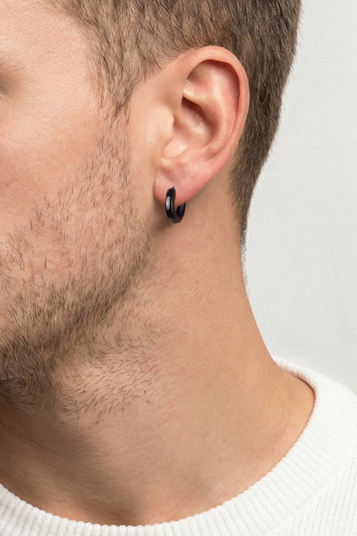 Klasik Stil Siyah Elektro Kaplama Çelik Erkek Halka Küpe