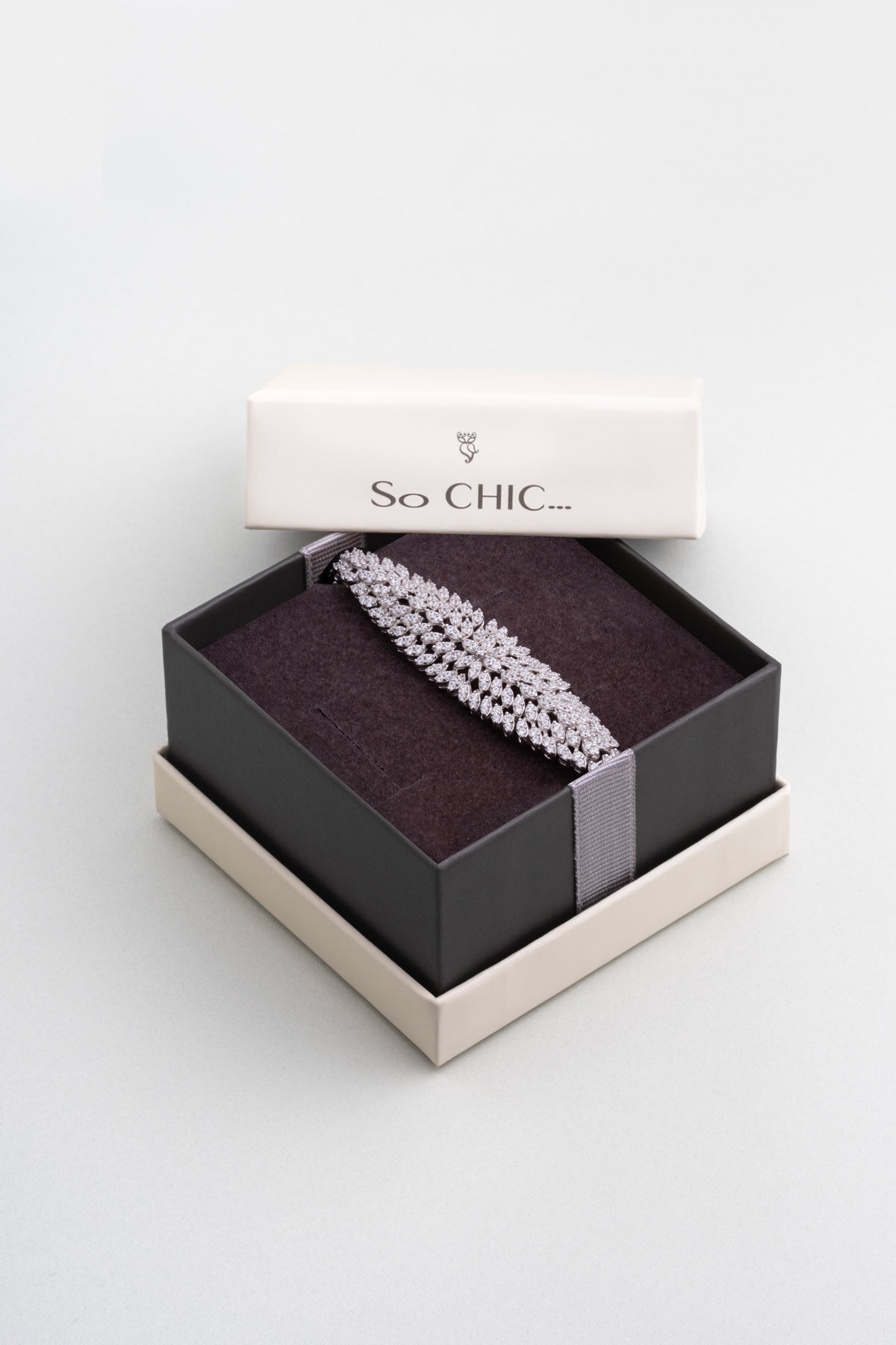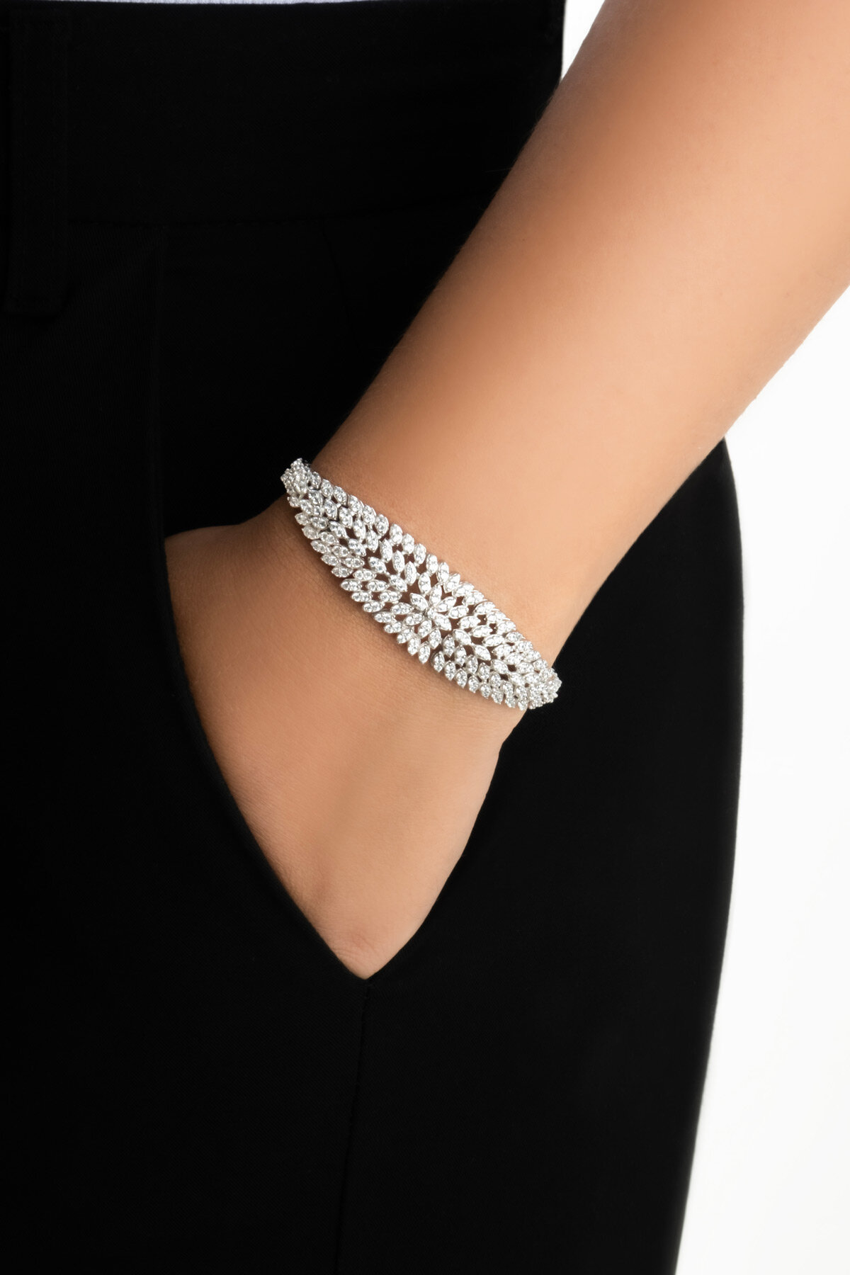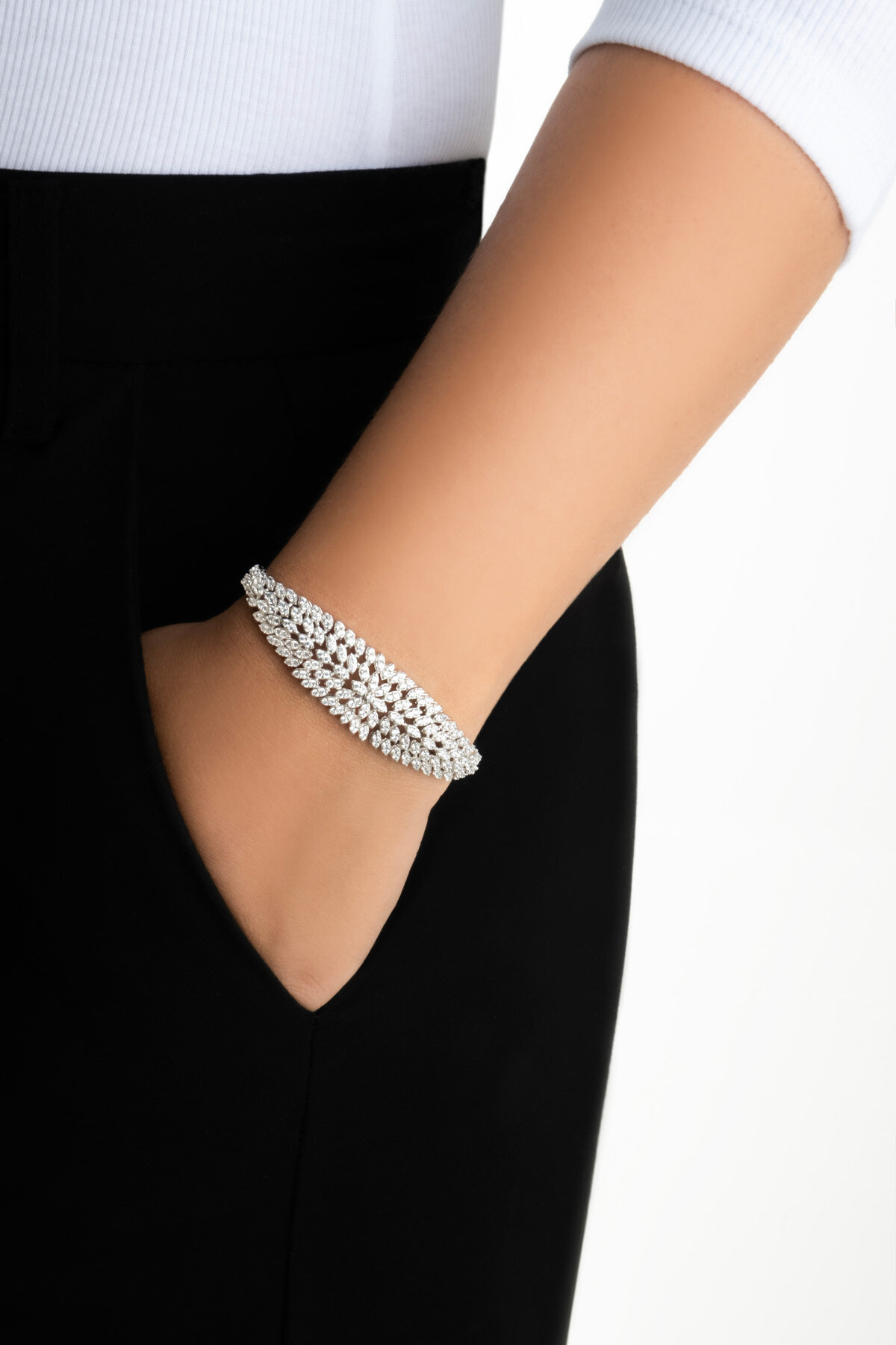 Miranda 18 Ayar Beyaz Altın Kaplama Gümüş Tasarım Bileklik