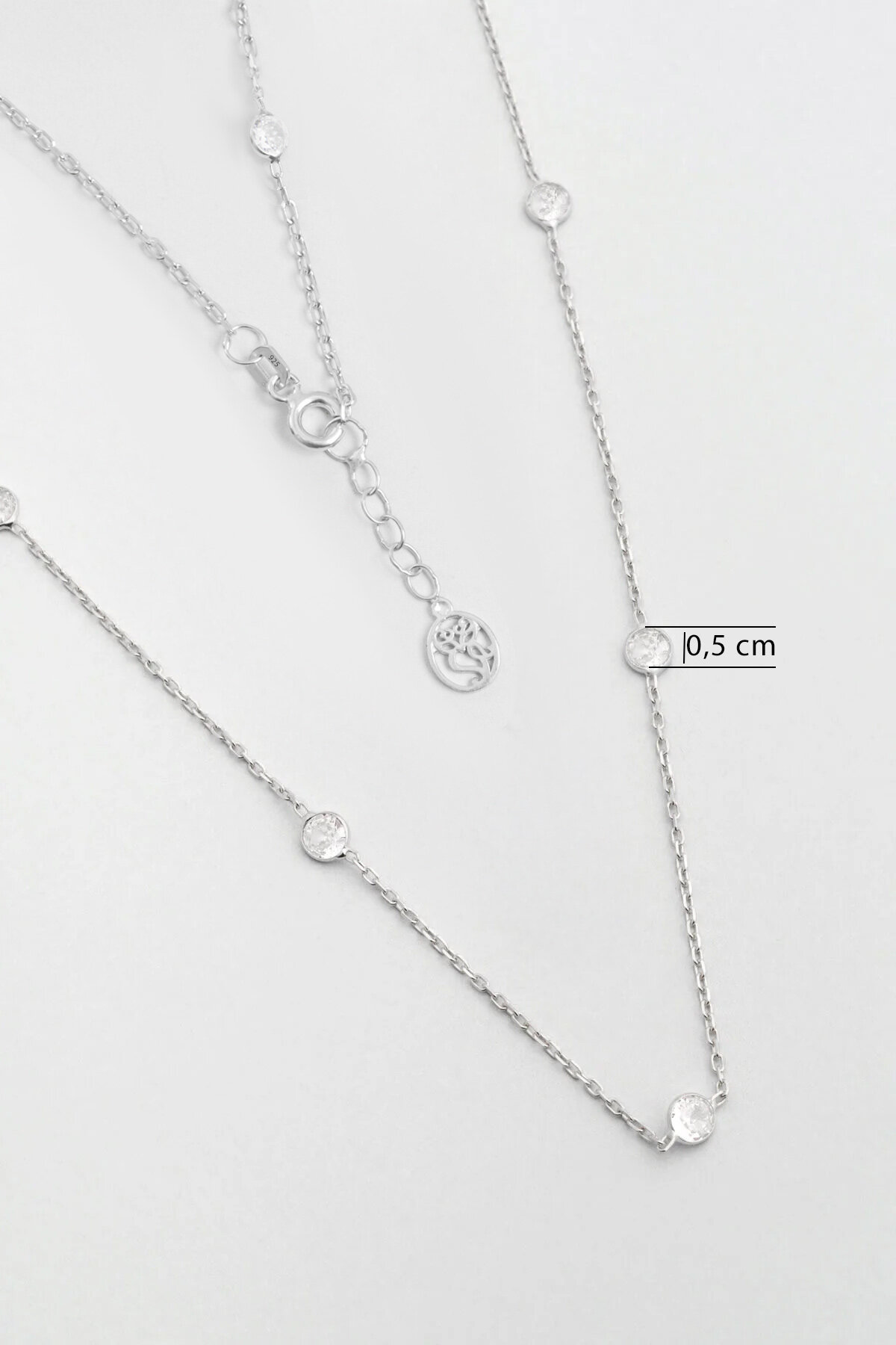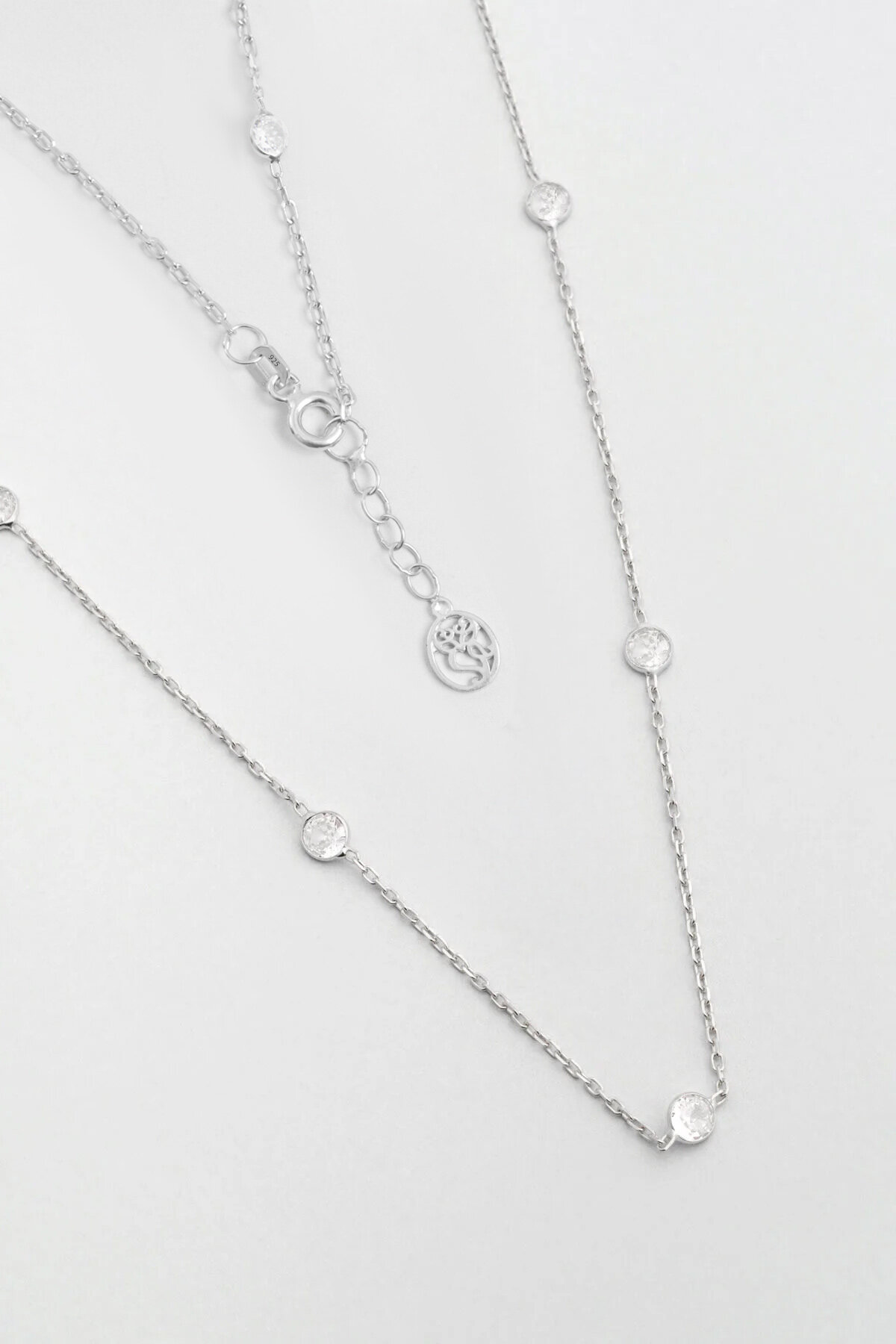 Yuvarlak Kesim 18 Ayar Beyaz Altın Kaplama 70 Cm Gümüş Kolye